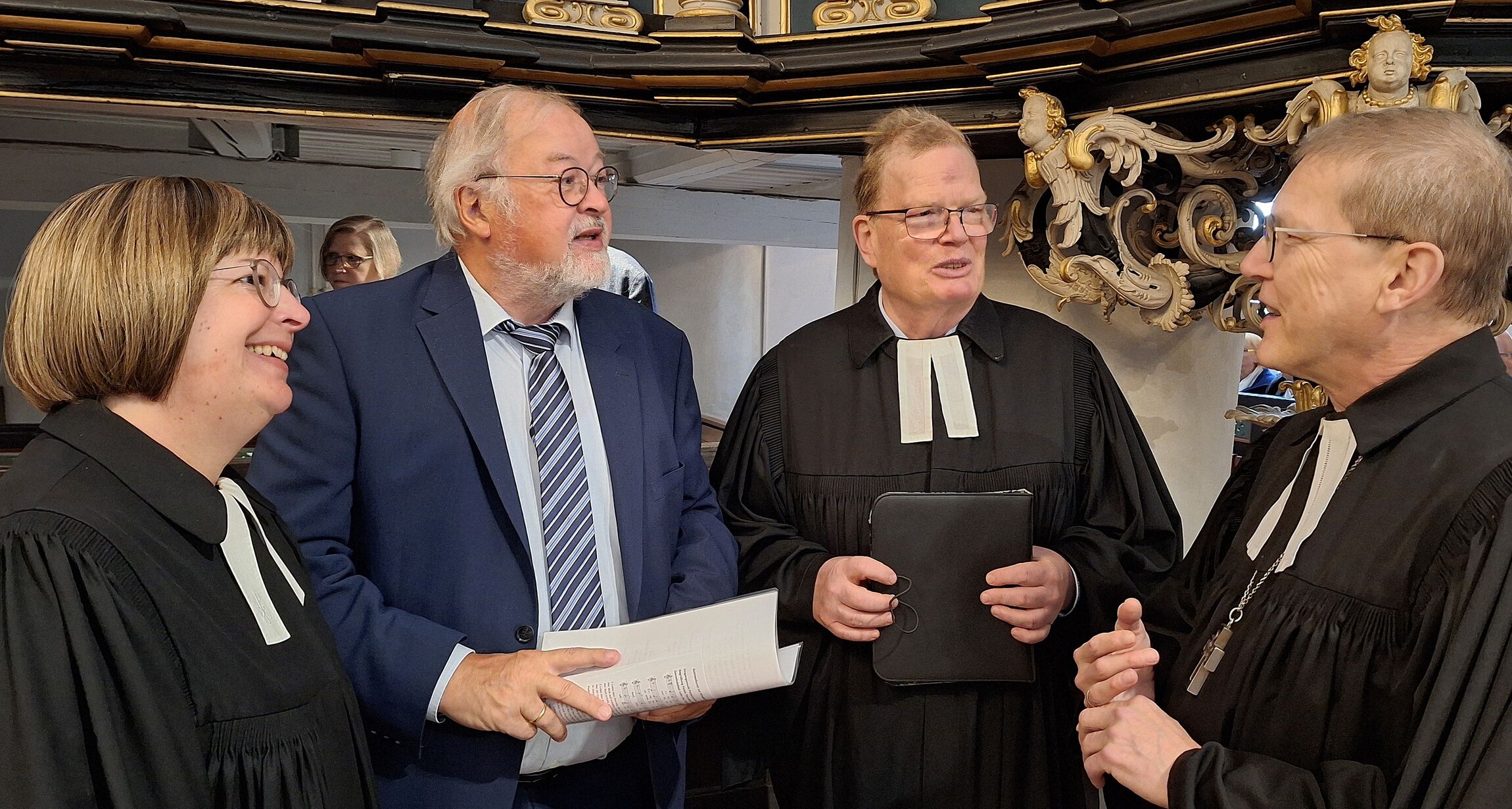 Grußworte spricht anschließend Otterndorfs Bürgermeister Claus Johannßen. Und Superintendentin Kerstin Tiemann. Sie, die sie die Orgel vor der Sanierung noch nie gehört habe, zeigt sich erfreut, dass Musik und Wort in St. Severi ab sofort wieder zusammenkommen. "Die Einheit von Musik und Lobpreis zur Ehre Gottes sind zwei Seiten einer Medaille." Auch Karsten Behr als Geschäftsführer der niedersächsischen Bingo-Umweltstiftung tritt ans Mikro. Und Professor Martin Böcker. "Was war das bei allen Beteiligten für eine unglaubliche Anstrengung, dieses große und herausfordernde Projekt der Restaurierung und Rekonstruktion der Gloger-Orgel von 1742 zu realisieren", sagt er und dankt unter anderem dem Orgel-Förderverein unter Leitung von Irmgard Kröncke. Und Orgelbauer Hendrik Ahrend und seinem Team für das freundliche Miteinander, für die großen Kompetenzen und Begabungen, die Fachkenntnis und für die Ernsthaftigkeit und Freude an der Arbeit. "Ihr habt aus einer zwar wertvollen, aber traurigen Altmetallsammlung ein großartiges Instrument gezaubert, eine Königin der Instrumente." Der derart Gelobte – begleitet von Ehefrau Susanne und zahlreichen Mitarbeitern - zeigt sich angetan. Und begeistert vom fachkundigen Handwerk. "Es ist schön, wenn wir mit unserer Arbeit als Restauratoren etwas tun können, was Menschen eine Freude macht."