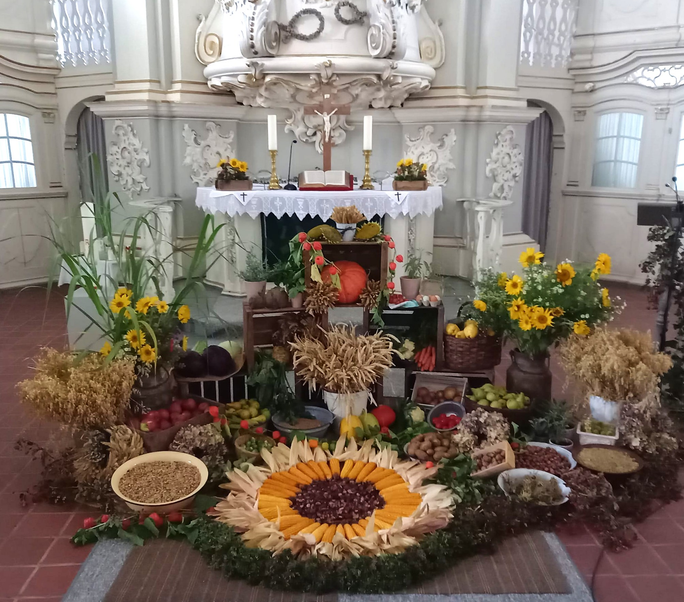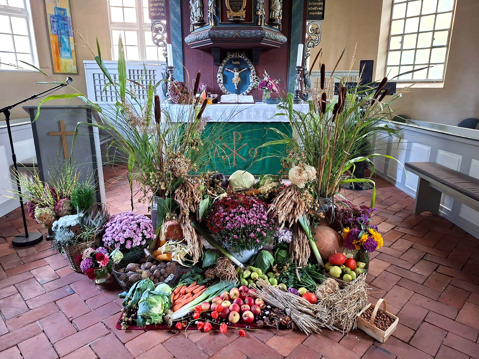 Wie in anderen Kirchengemeinden des Kirchenkreises Cuxhaven-Hadeln, wurde in diesem Jahr auch in den drei Kirchengemeinden Basbeck, Osten und Warstade Erntedank gefeiert – jede Gemeinde auf ihre eigene, liebevoll gestaltete Weise. Mit viel Engagement und Kreativität schmückten Ehrenamtliche die Altäre. In Osten und Basbeck übernahmen diese Aufgabe traditionell die Landfrauen, während sich in Warstade in diesem Jahr zwei engagierte Frauen ehrenamtlich um den festlichen Altarschmuck kümmerten.