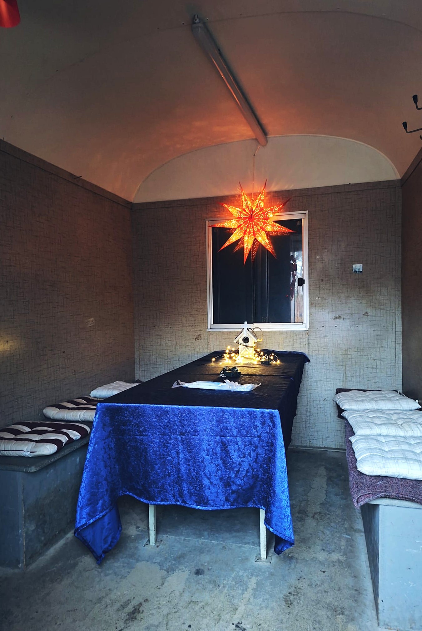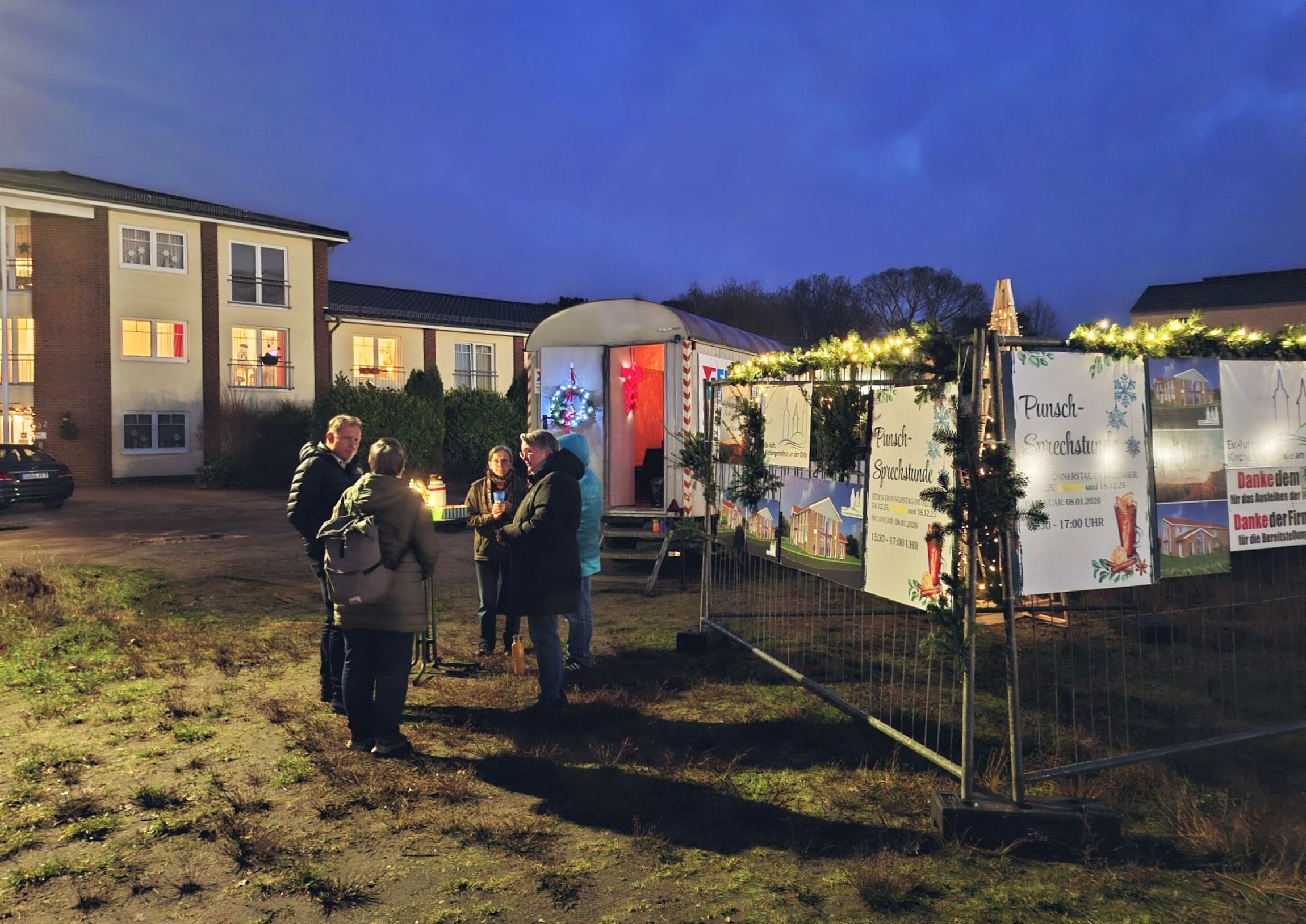 Doch stattdessen erwartete die Besucherinnen und Besucher am Donnerstagnachmittag ein liebevoll gestalteter Ort der Begegnung. Mit Bauwagen, Stehtisch, Punsch, Keksen und Mandarinen entstand eine einladende Atmosphäre, die zu offenen Gesprächen einlud.