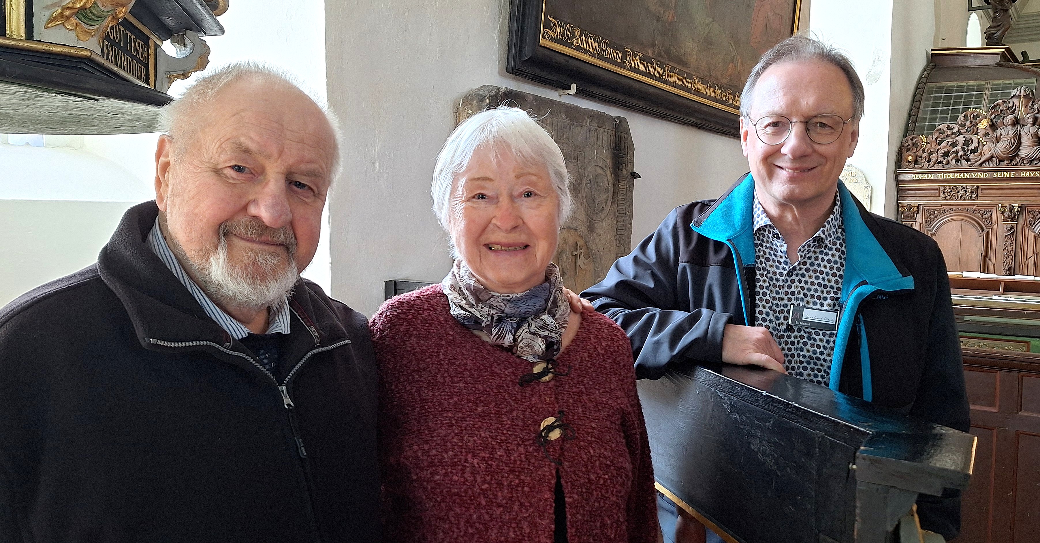 Christoph Schröter, mit 88 Jahren ältester "Kirchenwächter" im zwölfköpfigen Team von St. Nicolai, ist auch an diesem Nachmittag mit von der Partie. Über die Orgel - 1730 von Johann Hinrich Klapmeyer erbaut - wisse er ganz viel zu erzählen. „Mein Vater war zuletzt Organist in Bützfleth, drüben im Landkreis Stade“, lässt Schröter wie beiläufig fallen. Deshalb habe er einiges an Fachwissen mitbekommen. „Oder wussten Sie, dass die sichtbaren Einzelpfeifen seinerzeit noch mit dem Eiweiß von Enteneiern foliiert worden sind?“
