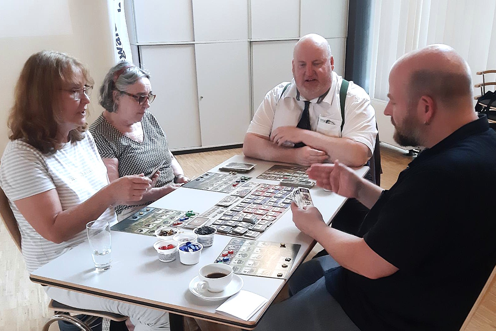 Auch die Idee, eigene Spiele mitzubringen, erwies sich sofort als Bereicherung: Ein Gast hatte sein Lieblingsspiel dabei – und schnell entstand eine mitreißende Runde, an der alle Anwesenden teilnahmen.