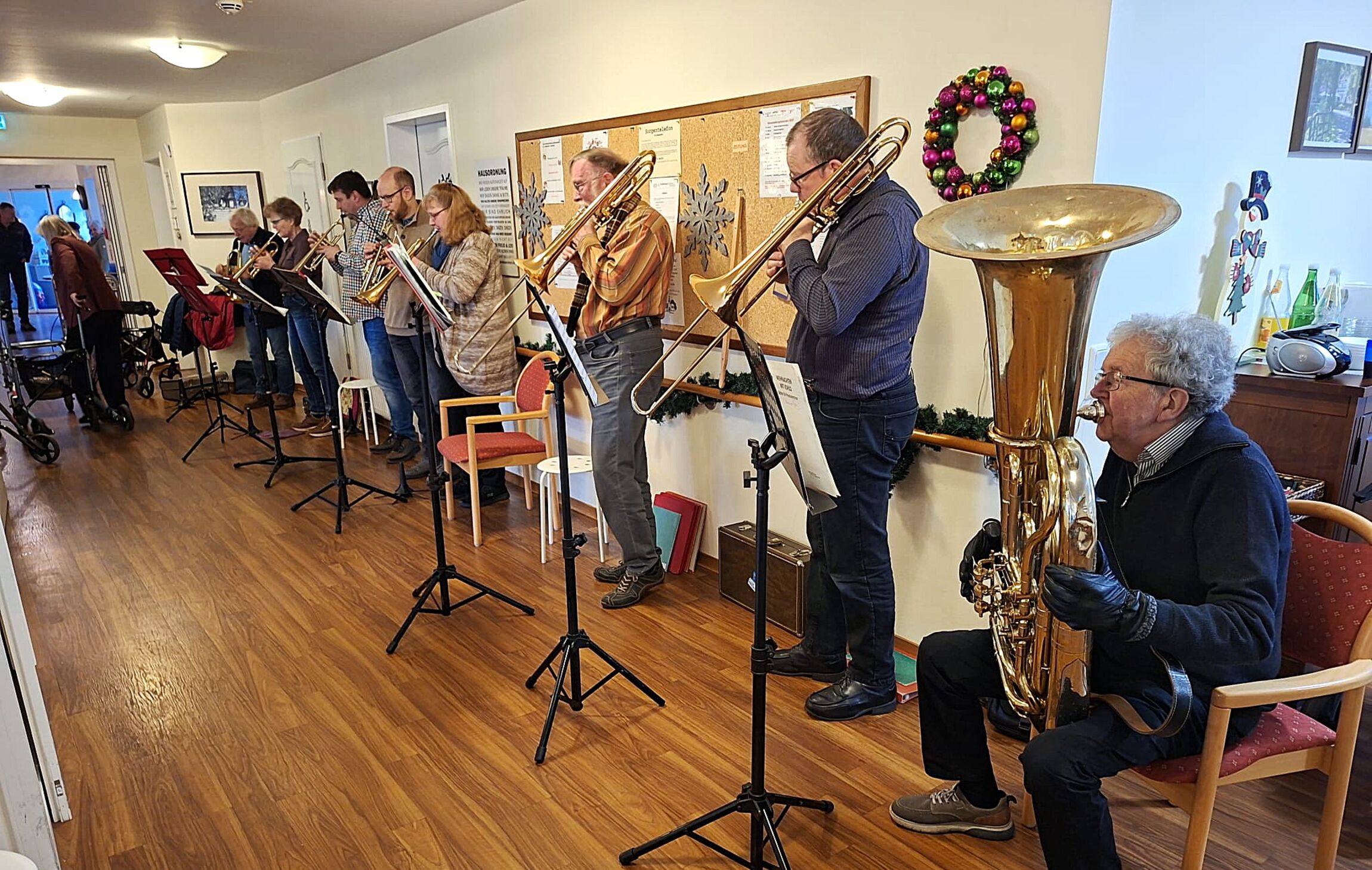 Dort füllten die Musikerinnen und Musiker des Posaunenchores Osten die Räume mit vertrauten Weihnachtsliedern – mal kraftvoll festlich, mal leise und warm. Viele der Bewohnerinnen und Bewohner stimmten mit ein. Ihr Gesang erfüllte die Säle und sorgte für eine Atmosphäre, die sowohl die Gäste als auch das Team der Einrichtungen tief berührte.