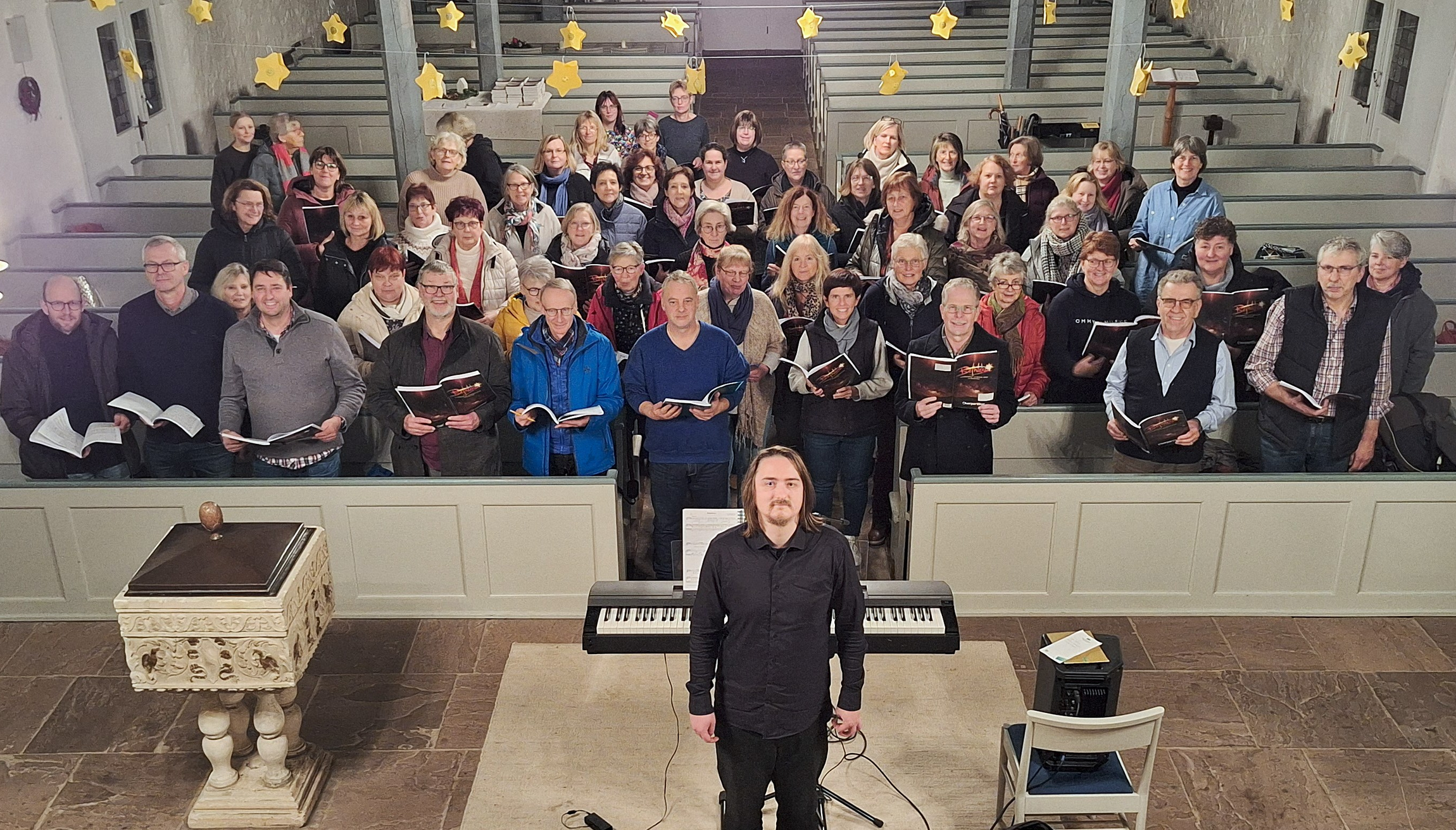 Die letzte gemeinsame Probe der Sängerinnen und Sänger aus dem Kirchenkreis Cuxhaven-Hadeln für das Weihnachtschormusical „Bethlehem“ hat auf ganzer Linie überzeugt. Mehr als 70 Beteiligte zeigten in der Cadenberger Kirche eindrucksvoll, was sie unter der Leitung von Popkantor Valentin Behr in den vergangenen Wochen und Monaten erarbeitet haben.