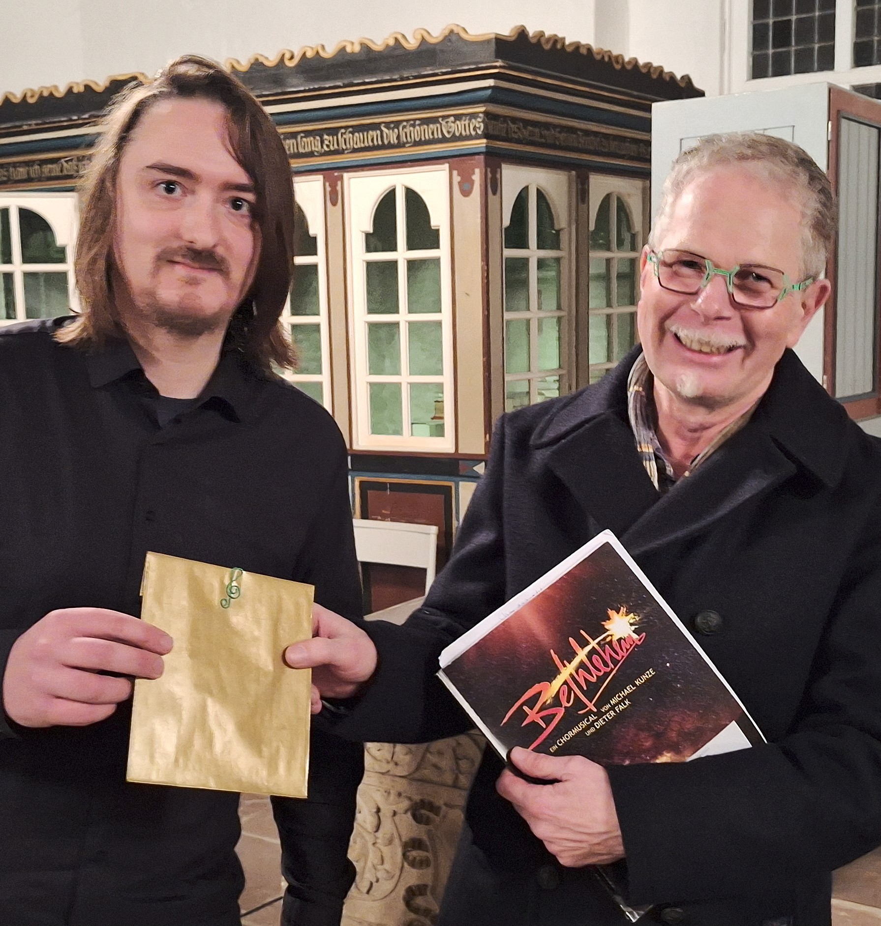 Ehe es an die abendliche Arbeit ging, wurde Valentin Behr ein besonderes Dankeschön zuteil. Pastor Peter Seydell überreichte im Namen der Mitsängerinnen und Mitsänger einen kleinen Umschlag mit einer Spende – ein herzliches Dankeschön für sein unermüdliches Engagement.