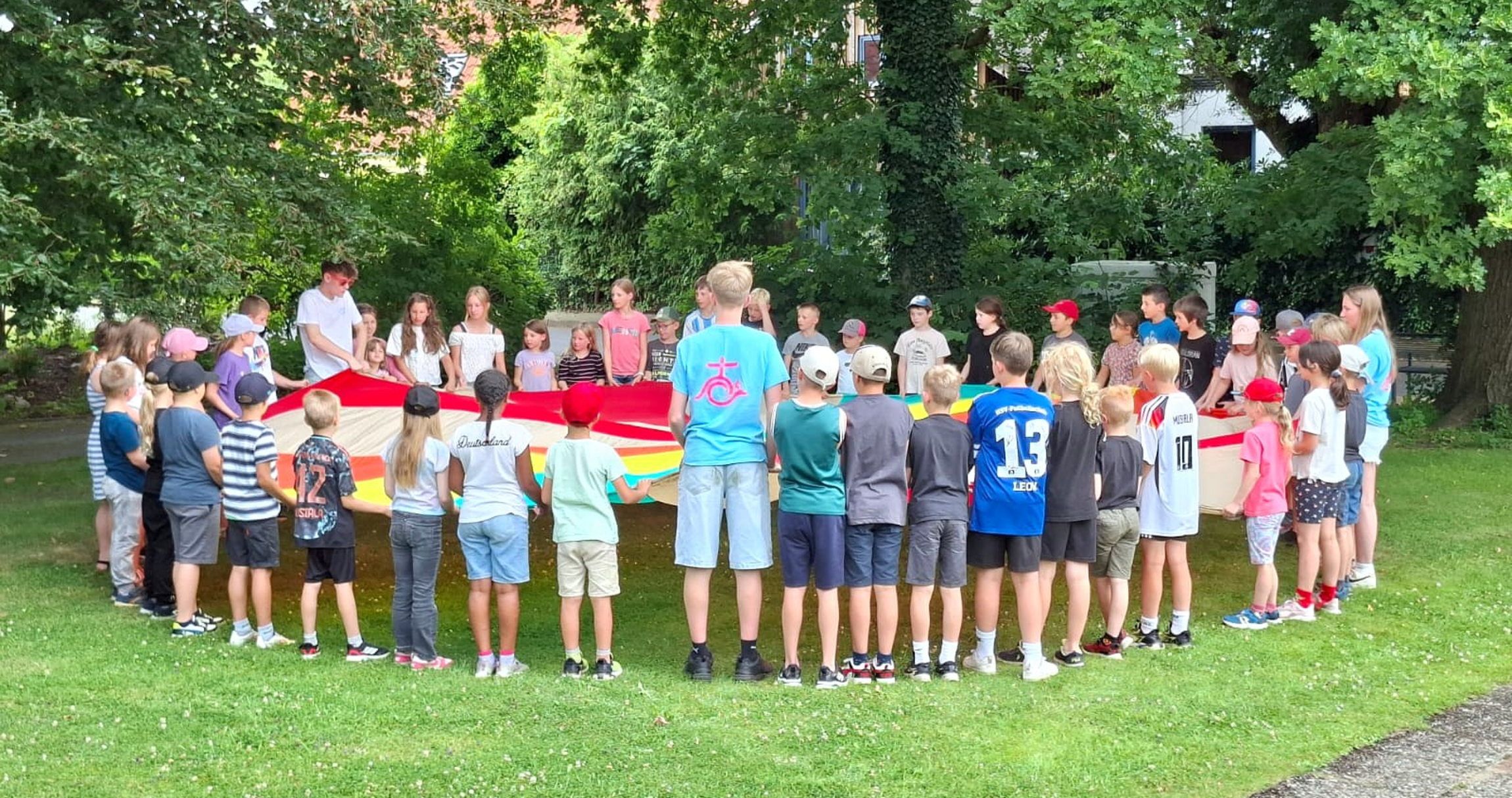 Neben actionreichen Gruppenspielen ging es zwischendurch auch ruhig und spannend zu: Gemeinsam sang die große Runde und lauschte gebannt einer alten Geschichte aus der Bibel – von Dürre, mutigen Propheten und einem echten Wunder. Trotz der Hitze kein Problem: Die Kinder ließen sich vom Abenteuer rund um Elia und die Baalspriester fesseln.