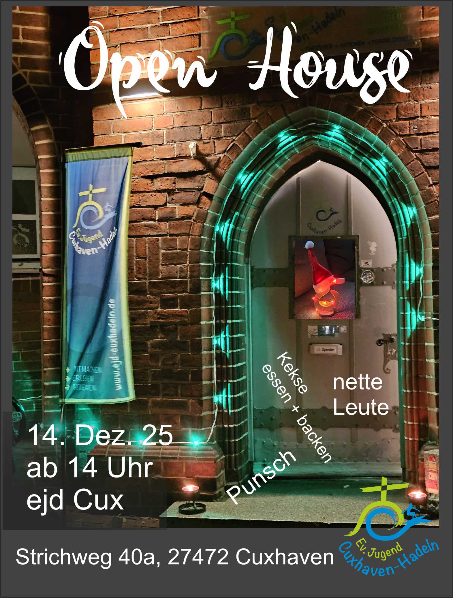 Seit nunmehr zehn Jahren lädt der Evangelische Jugenddienst am 3. Advent – in diesem Jahr am 14. Dezember – ab 14 Uhr in seine Räume am Strichweg 40a neben der St.-Petri-Kirche in Cuxhaven ein, um vorweihnachtliche Atmosphäre aufkommen zu lassen. Eingeladen sind Nachbarn, Eltern von Teilnehmenden, Kinder und Jugendliche, Haupt- und Ehrenamtliche sowie alle Neugierigen.