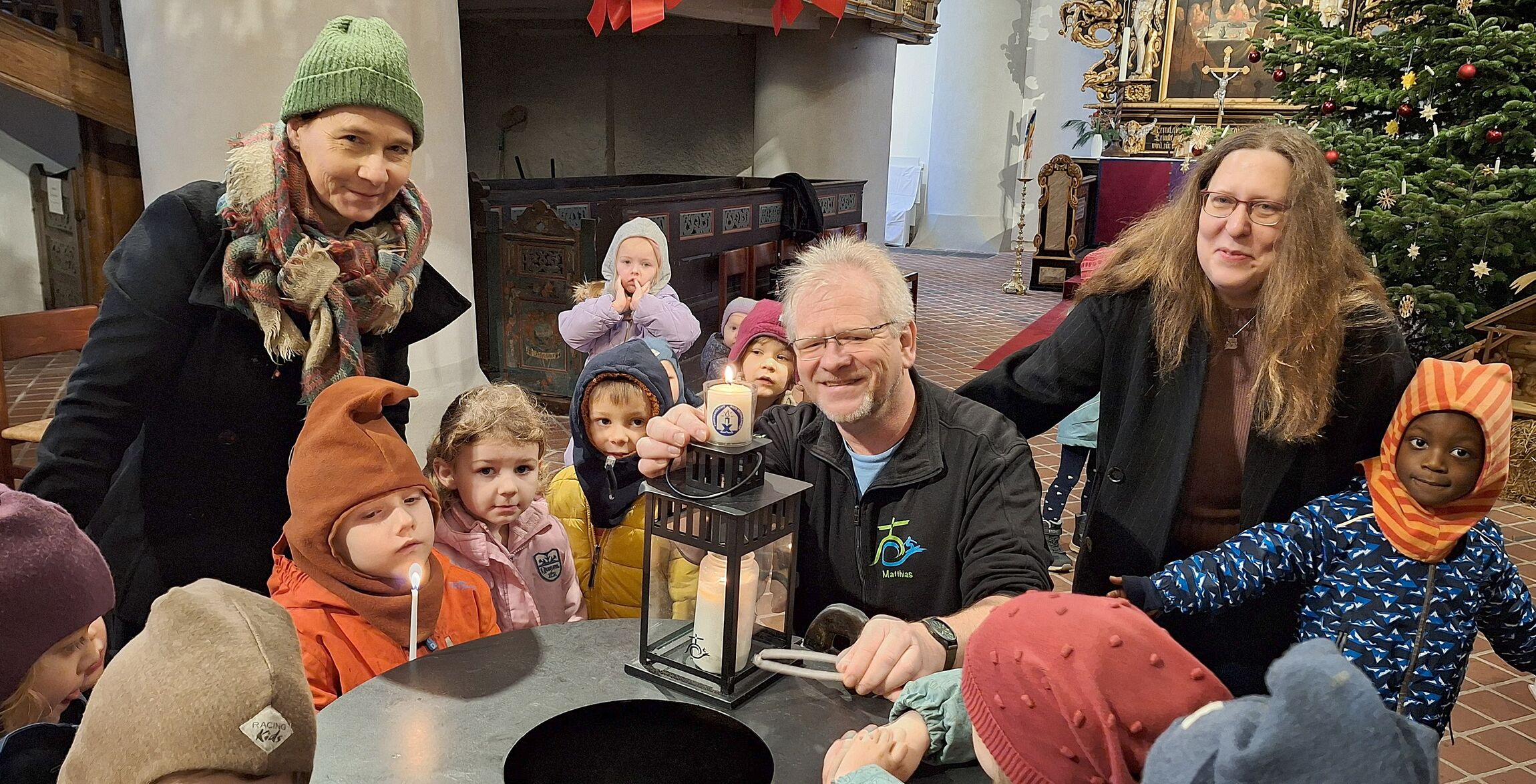 Pastorin Franziska May freut sich über den Besuch der rund 20 Kinder, die gemeinsam mit ihrer Leiterin Alexandra Kock an diesem Freitagmorgen ins erleuchtete Gotteshaus gekommen sind. Sie erfahren, warum das Friedenslicht seit Jahrzehnten Menschen verbindet – über Ländergrenzen, Kulturen und Religionen hinweg. Gerade in unruhigen Zeiten erinnere es daran, dass Frieden im Kleinen beginne.