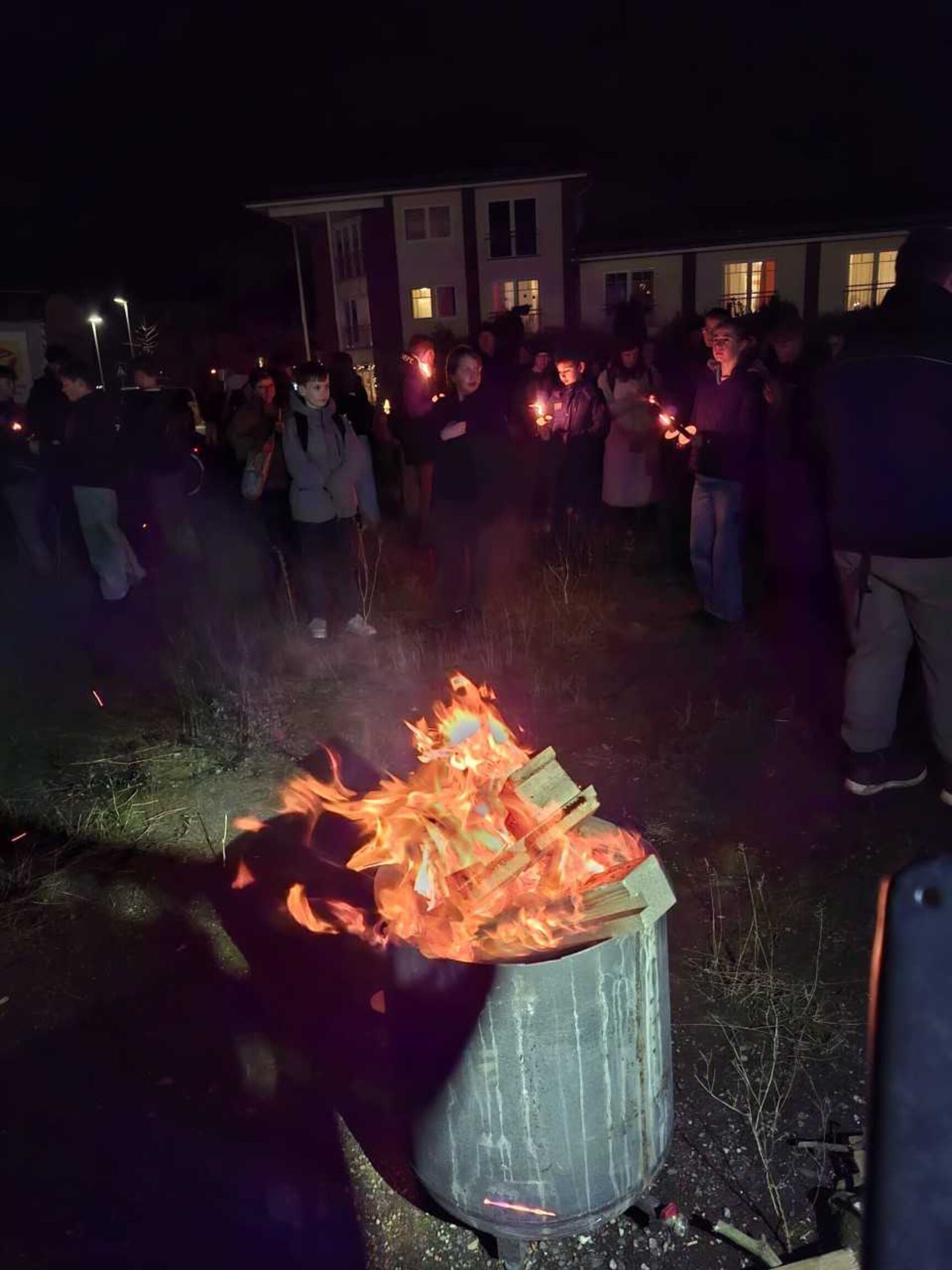 Mit Fackeln auf dem Weg zum Baugrundstück