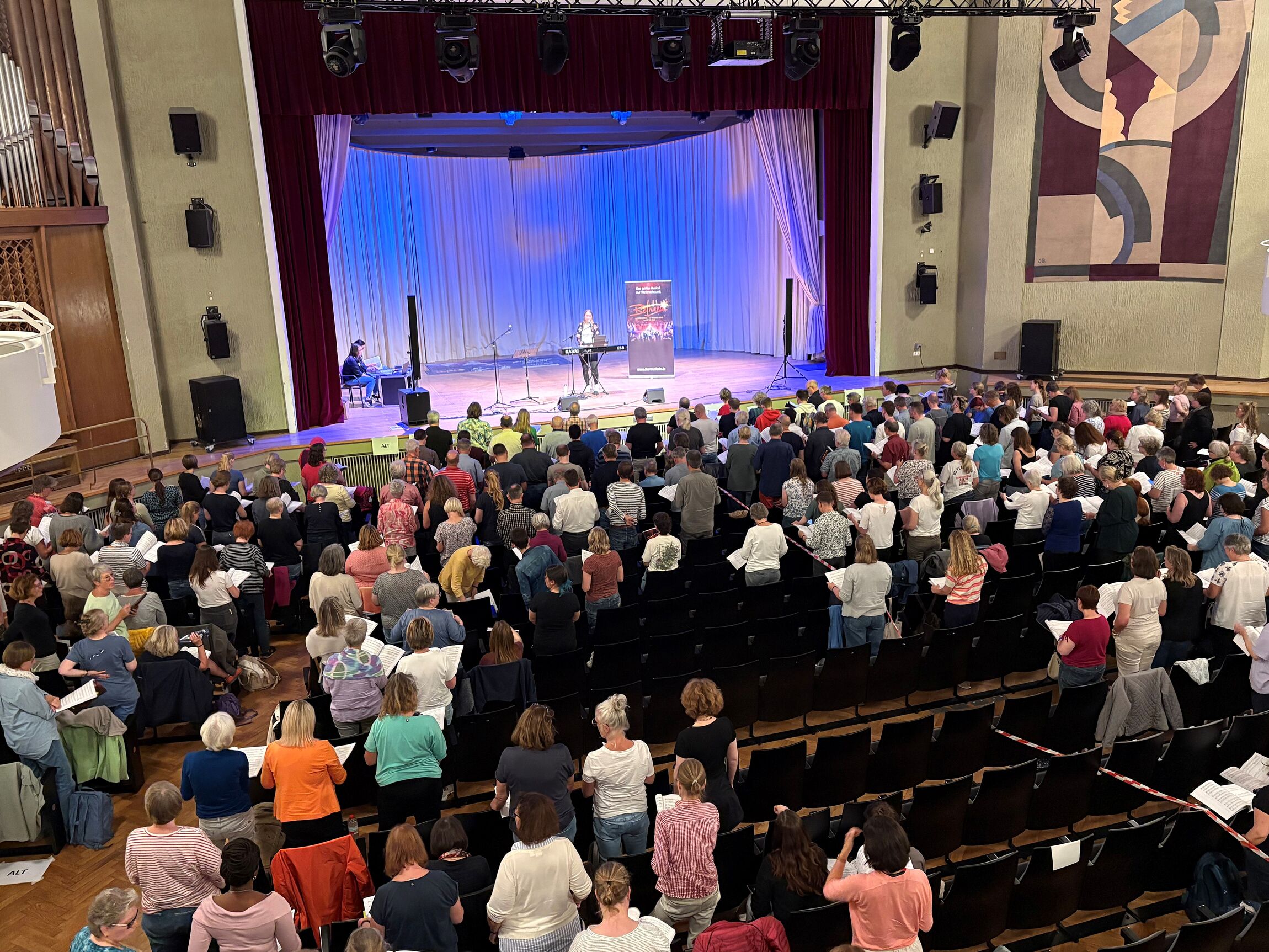 Ein Meer von Stimmen füllte am Sonntag die Friedrich-Ebert-Halle in Hamburg-Harburg – Auftakt der ersten Regionalprobe für das Weihnachtschormusical „Bethlehem“. Sängerinnen und Sänger aus ganz Norddeutschland stimmten gemeinsam ein, probierten Melodien, entdeckten Harmonien – und spürten schon jetzt die besondere Magie, die bei der großen Aufführung im Dezember die Barclays Arena erfüllen wird.