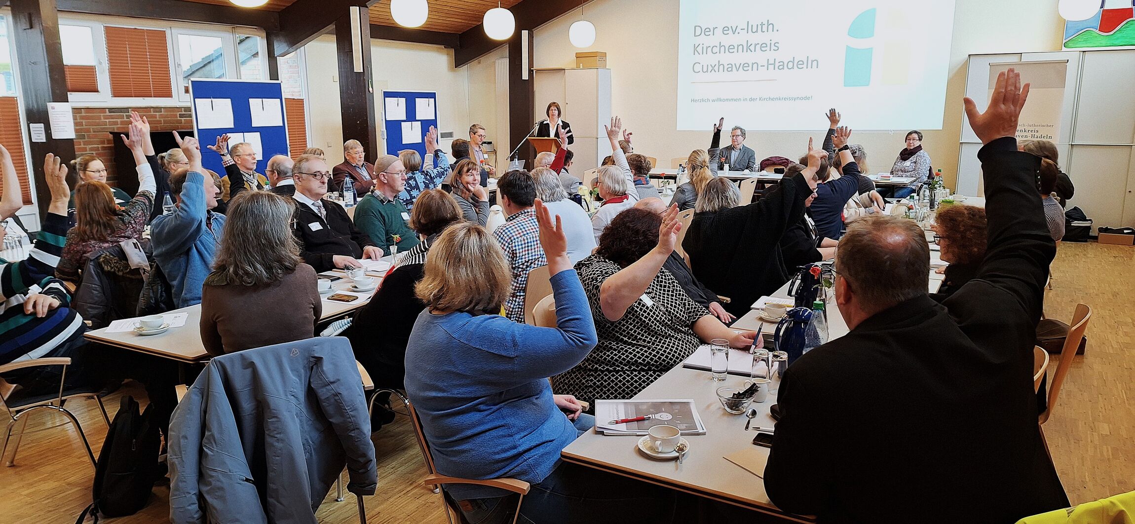 Ein regelrechter Wahlmarathon prägt am Samstag die vierstündige Sitzung im Gemeindezentrum von Altenwalde. Ihr vorausgegangen ist ein feierlicher Gottesdienst in der Kreuzkirche, bei dem Superintendentin Kerstin Tiemann den versammelten Mitstreitenden in den Kirchenbänken nicht nur das offizielle Gelöbnis abnimmt, sondern auch Mut und Zuversicht spendet bei der Übernahme von Verantwortung durchs ehrenamtliche Tun in der Synode. "Keiner und keine muss und soll das alles alleine machen", unterstreicht die Superintendentin, "Gott ruft uns nicht in die Überforderung, sondern schenkt uns Menschen, die uns helfen, die Lasten zu tragen."