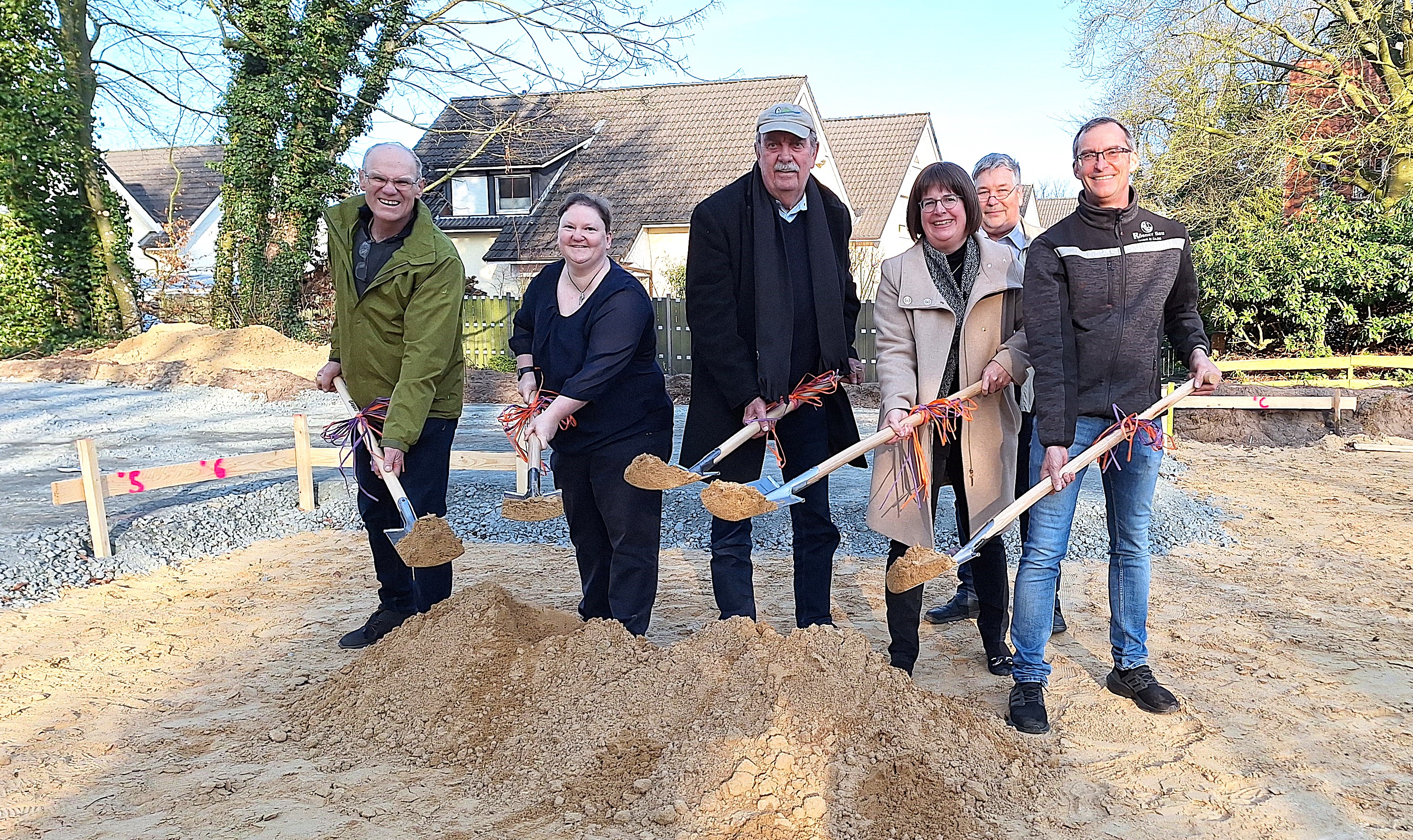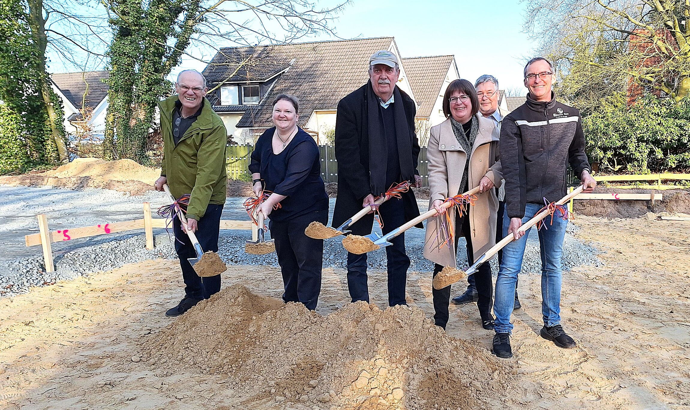 Von hohen Bäumen umstanden ist das Grundstück "Am Königshof" in Altenwalde. In den Wipfeln zwitschern fröhlich die Vögel, die Sonne schickt ihre Strahlen durchs noch spärlich begrünte Geäst. Ein herrlicher Standort für das neue Pfarrhaus, heißt es unisono aus der Runde all derer, die sich an diesem Nachmittag zum symbolischen Spatenstich eingefunden haben.