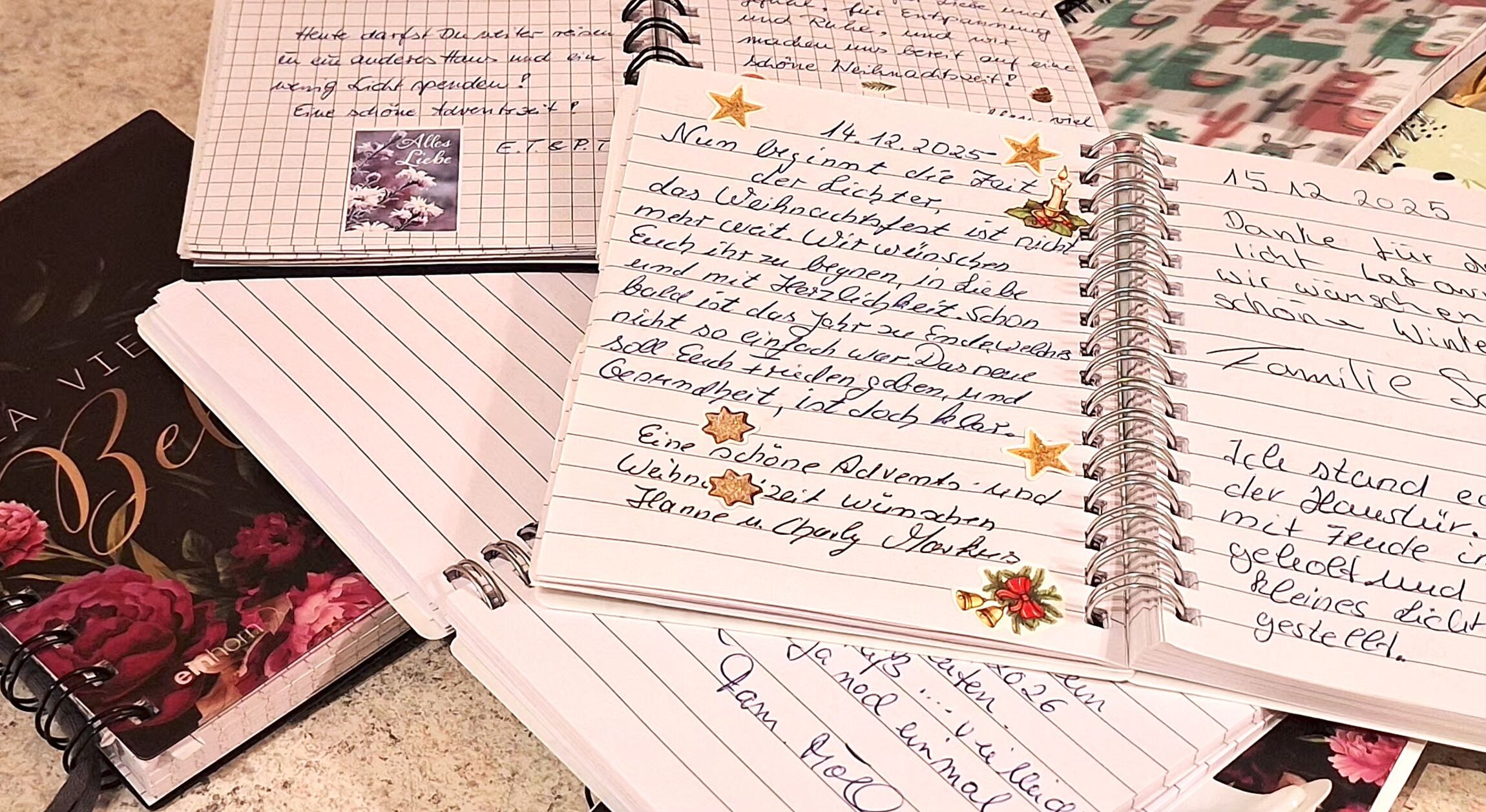 „Das Licht soll Leben signalisieren, Liebe, Wärme und Hoffnung geben“, erklärt Pastor Hövelmann, als er durch die Einträge blättert. Auf einem Tisch vor dem Altar liegen zahlreiche, liebevoll gestaltete Tagebuchseiten, die von der Vielfalt der Erfahrungen zeugen.