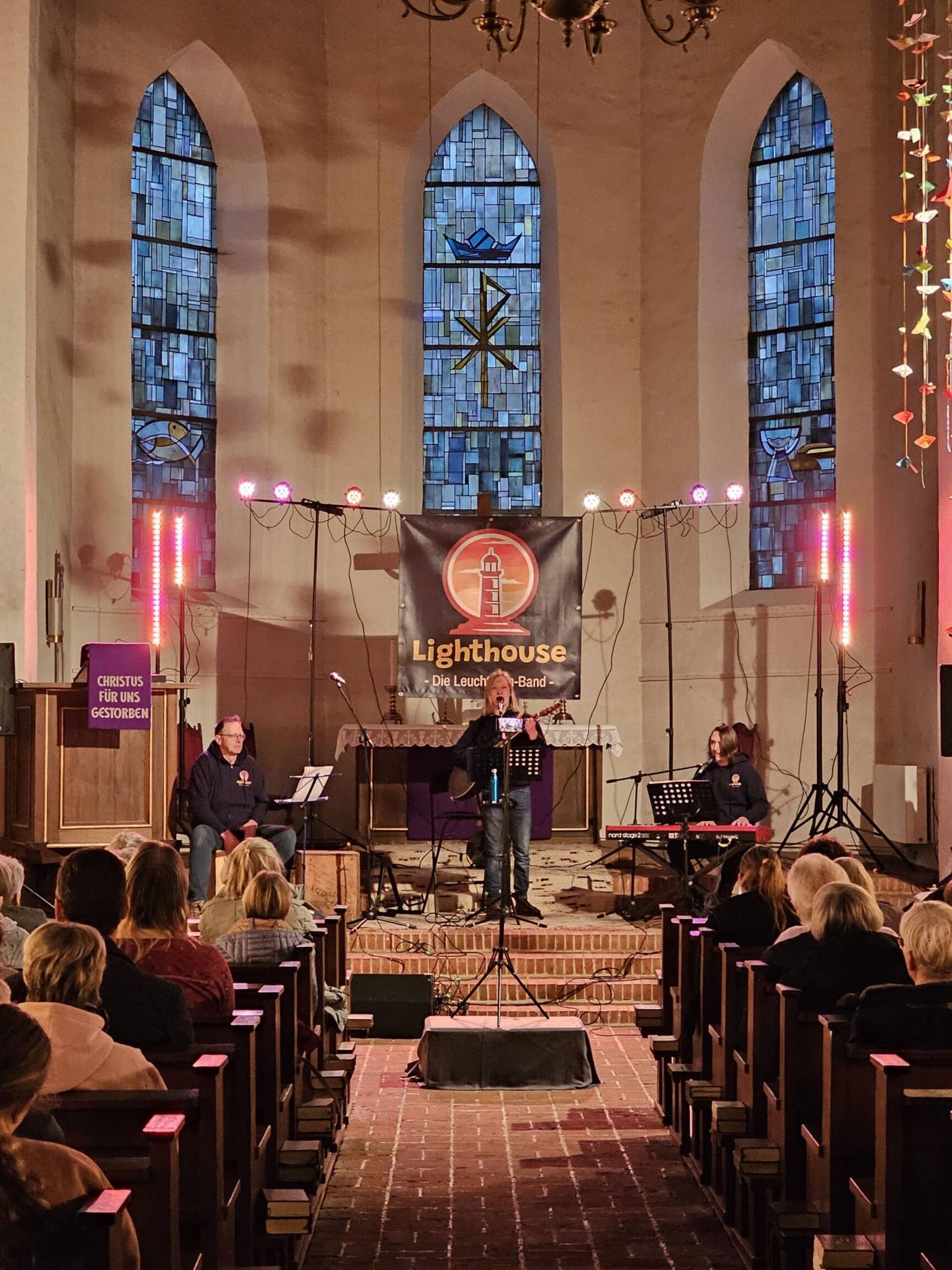 Mitreißende Melodien, ansprechende Texte in einer bunt ausgeleuchteten, voll besetzten Kirche – so lässt sich der musikalische Abendgottesdienst der noch jungen Kirchenband „Lighthouse“ in der St.-Georg-Kirche in Wanna zusammenfassen.