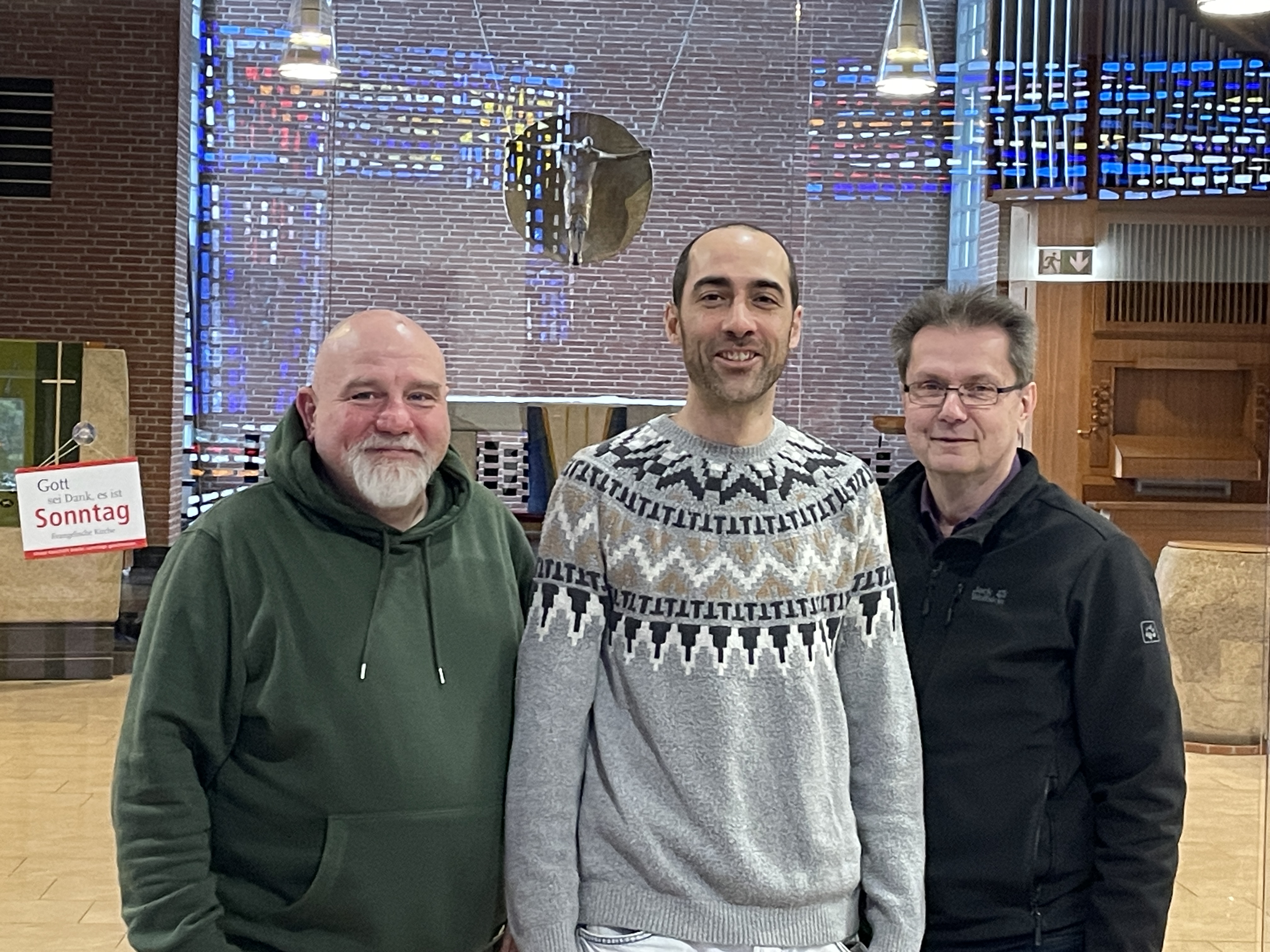 Zwischen dunklen Backsteinwänden und farbigem Licht stehen drei Männer, die ein gemeinsames Ziel verbindet: jungen Menschen Raum für künstlerische Entfaltung zu geben. Es sind Jörg Flehnert, Niels Hertel und Pastor Hans-Christian Engler. Der eine organisiert und strukturiert, der zweite bringt künstlerische Erfahrung und Hochschulpraxis ein, der dritte öffnet mit der Kulturkirche einen besonderen Ort für kreative Prozesse. Ihre Vorfreude auf das neue Projekt ist spürbar.
