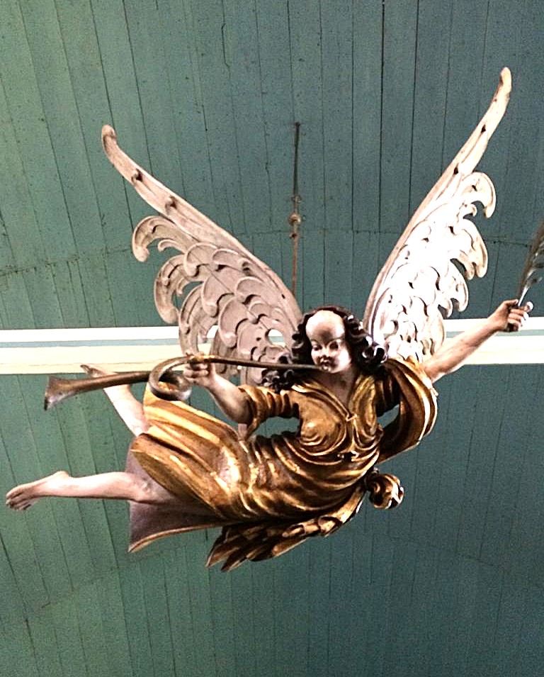 Aber all das ist Geschichte. Die Gegenwart bietet auch allerlei interessante Hingucker: So wird der barocke Tauf-Engel, der von der Kirchendecke hängt, nur von den wenigsten übersehen werden..