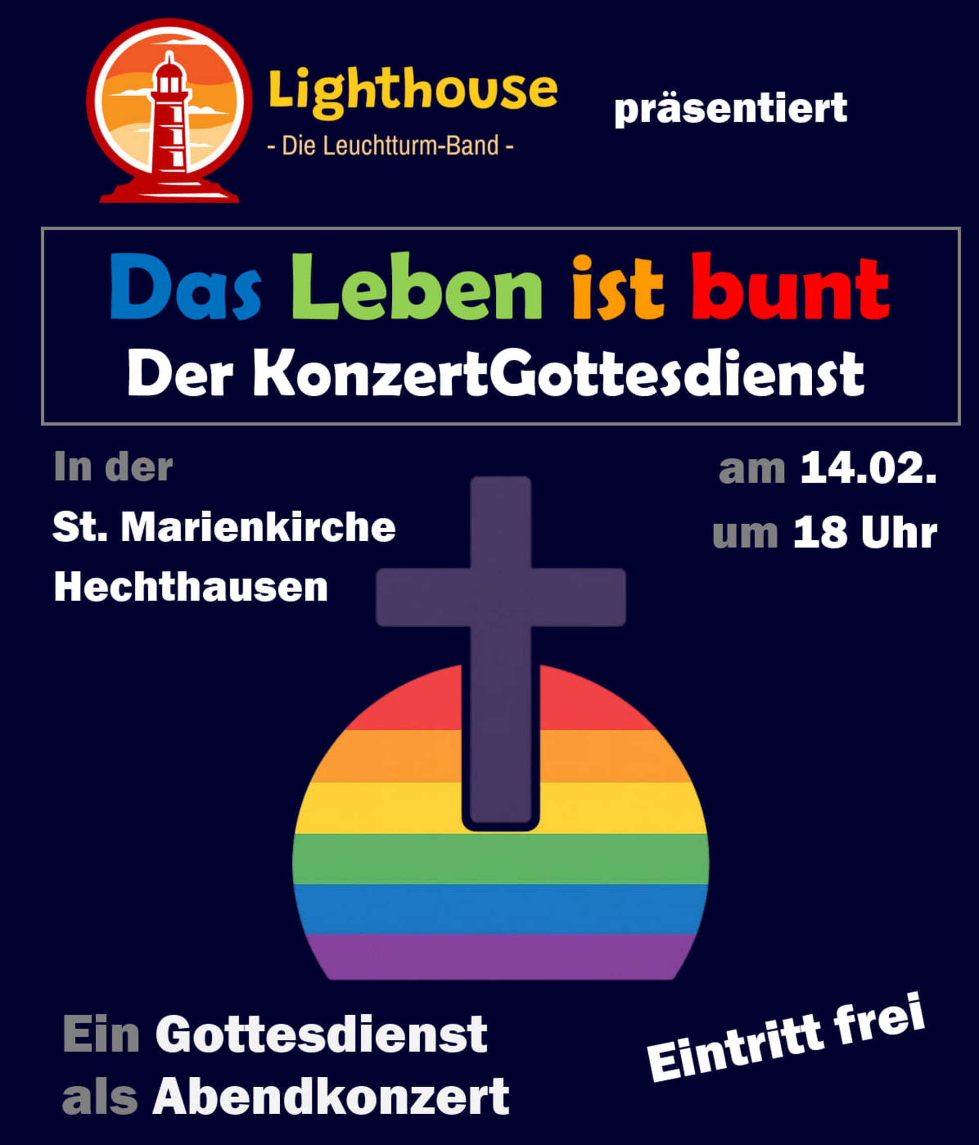 „Das Leben ist bunt“ – die Leuchtturm-Band Lighthouse wird bei ihrem nächsten Konzertgottesdienst alle Register ziehen. Am Samstag, 14. Februar 2026, um 18 Uhr verwandelt sich die St.-Marienkirche in Hechthausen in einen Ort voller Musik, Farbe und Zuversicht. Als Abendkonzert gestaltet, verbindet der Gottesdienst moderne christliche Musik mit einer offenen, lebensnahen Botschaft: Glaube darf vielfältig sein, berühren und bewegen.